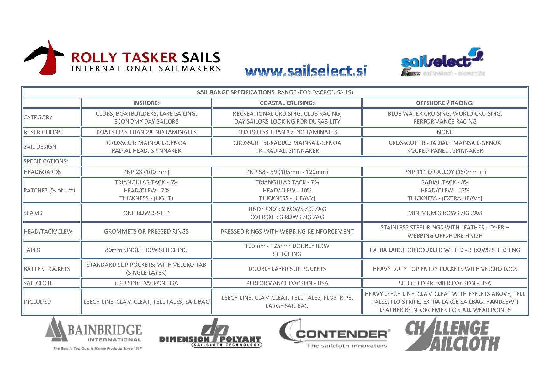(Samo "ime" kategorije, še ne pomeni, da boste pri vseh jadrarjih dobili enako kvaliteto izdelave jadra, poglejte si TUKAJ standarde izdelave za posamezne katergorije pri SailSelect®-Rolly Tasker.)